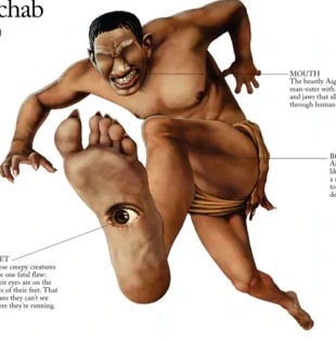 The aigamuxa are legendary creatures of the Khoikhoi people. Its main diet is humans, which it regards as zebras, and eats with its extremely elongated teeth. The bushmen are said to target lone desert travelers at night.