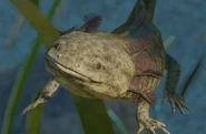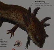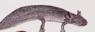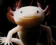 The axolotl, Ambystoma mexicanum, also known as the Mexican walking fish, is a neotenic salamander related to the tiger salamander. Although colloquially known as a "walking fish", the axolotl is not a fish but an amphibian.