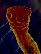 Taenia saginata, commonly known as the beef tapeworm, is a zoonotic tapeworm belonging to the order Cyclophyllidea and genus Taenia. It is an intestinal parasite in humans causing taeniasis and cysticercosis in cattle.