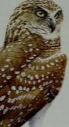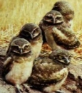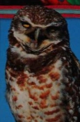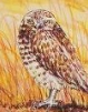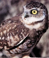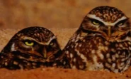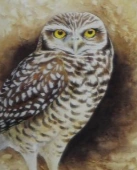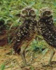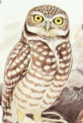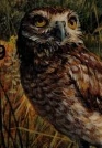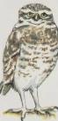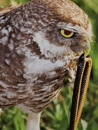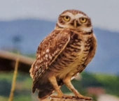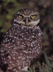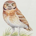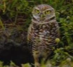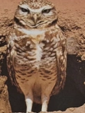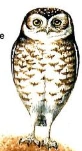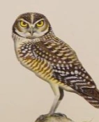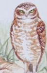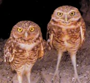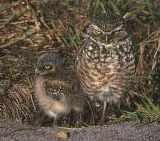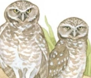 The burrowing owl is a small, long-legged owl found throughout open landscapes of North and South America. Burrowing owls can be found in grasslands, rangelands, agricultural areas, deserts, or any other open dry area with low vegetation. They nest and roost in burrows, such as those excavated by prairie dogs.