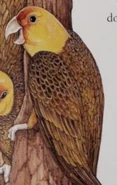 The Carolina parakeet or Carolina conure is an extinct species of small green neotropical parrot with a bright yellow head, reddish orange face and pale beak native to the eastern, midwest and plains states of the United States.