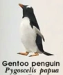The gentoo penguin is a penguin species in the genus Pygoscelis, most closely related to the Adélie penguin and the chinstrap penguin. The earliest scientific description was made in 1781 by Johann Reinhold Forster with a type locality in the Falkland Islands.