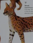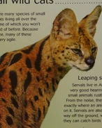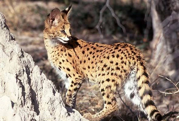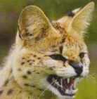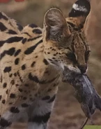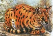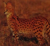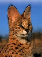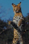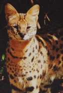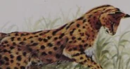 The serval is a wild cat native to Africa. It is rare in North Africa and the Sahel, but widespread in sub-Saharan countries except rainforest regions. On the IUCN Red List it is listed as Least Concern. It was first described by von Schreber in 1776. It is the sole member of the genus Leptailurus.